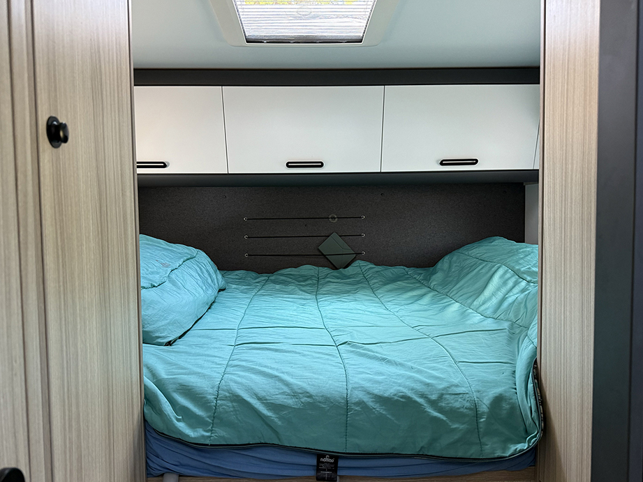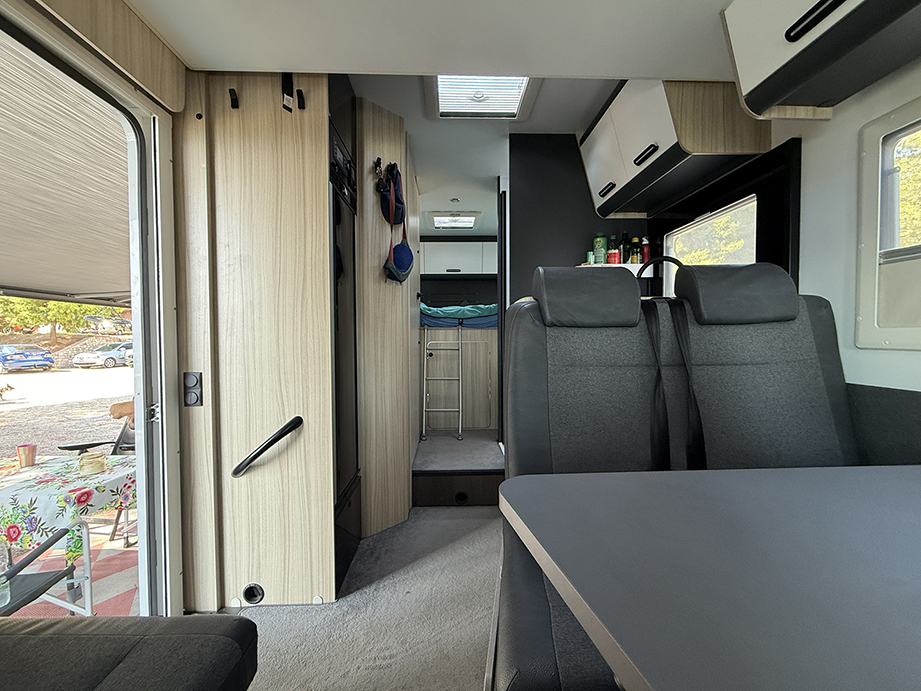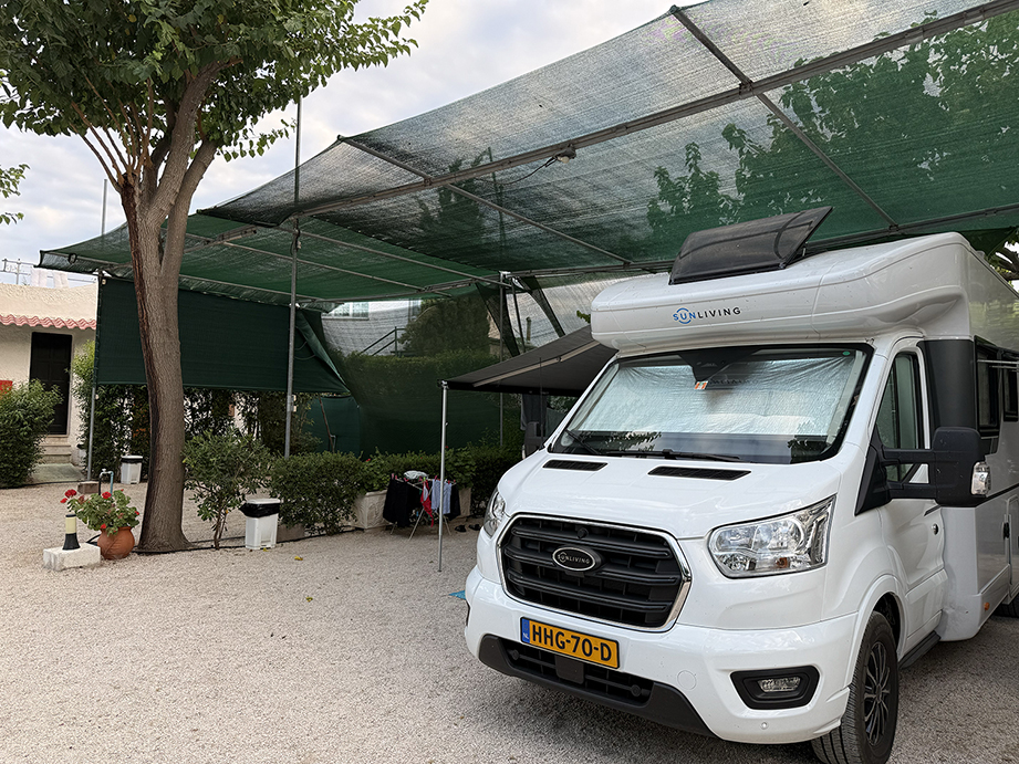 Der Sun Living S 72 SP erwies sich als perfekt für uns. Dieses teilintegrierte Wohnmobil ist 7,20 Meter lang, 2,30 Meter breit und 2,87 Meter hoch. Mein Partner und ich schliefen im hinteren Querbett, wo wir viel Platz hatten. Unsere Jungs, die wenige Wochen später ihren dreizehnten und sechzehnten Geburtstag feierten, teilten sich das Klappbett. Die beiden, die wie Unkraut wachsen, hatten etwas weniger Platz als wir. Trotzdem hat es gut funktioniert. Das Einzige, was wir in diesem Urlaub wirklich vermisst haben, war eine Klimaanlage. In Griechenland war es extrem heiss, sodass die Temperatur im Wohnmobil nachts erheblich anstieg, obwohl wir die Dachluken und Fenster rechtzeitig geschlossen und geöffnet hatten. Glücklicherweise sorgte ein mitgebrachter Ventilator für etwas Abkühlung. Und dank der Klimaanlage in der Kabine blieb es tagsüber während der Fahrt schön kühl.