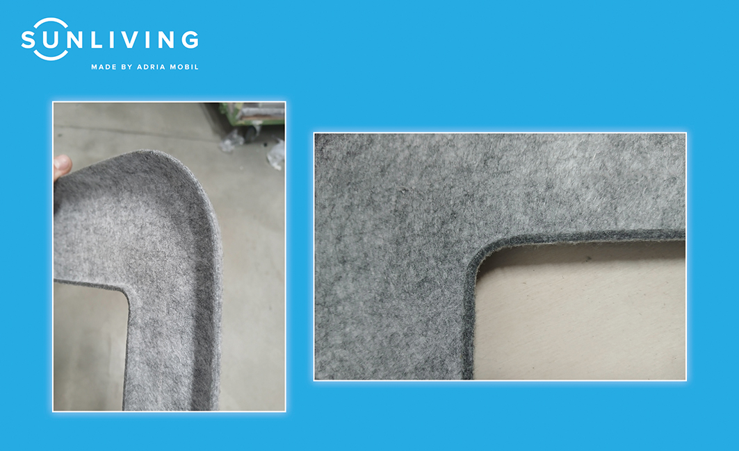 NB: PES wird auch im Sun Living V 60DL verwendet. Dies verleiht diesem Van sofort ein wärmeres Aussehen. Geräusche werden gedämpft und es trägt auch zur Isolierung bei, sodass die Wärme länger im Inneren bleibt.